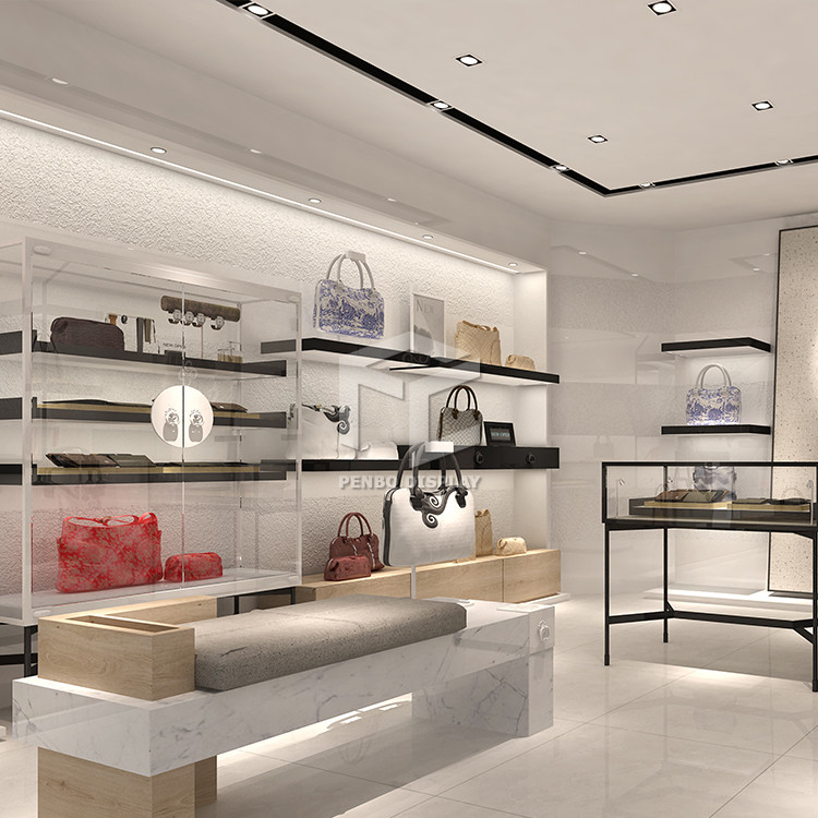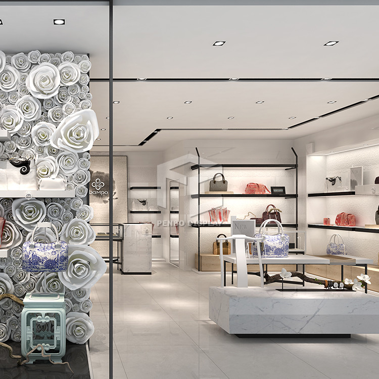 | Nome do artigo: | Projeto da loja dos sacos | Materiais principais: | MDF, placa da melamina, vidro de aço inoxidável, moderado |