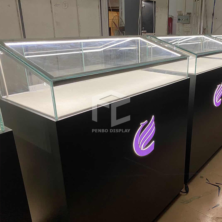 Com luzes do ponto do diodo emissor de luz dentro das mostras. E igualmente com veludo cinzento.